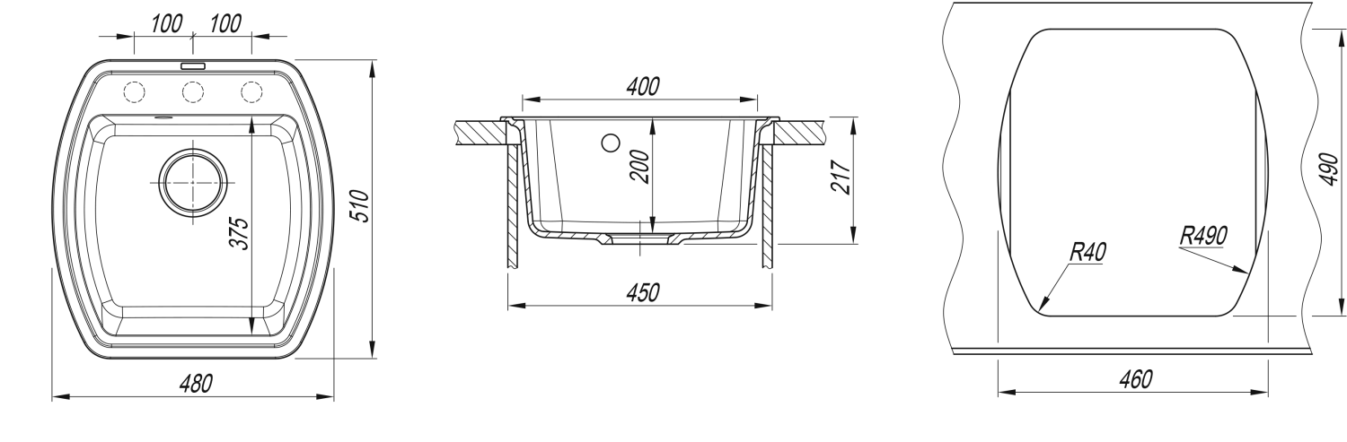 Мойка "Нире 480", черный FG