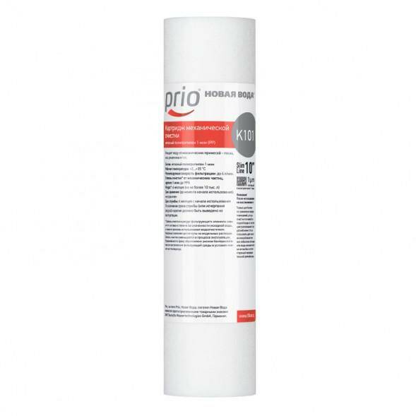 Картридж механической очистки из полипропилена с характерным размером пор 1 мкм. Высота 10”. Стандарт Slim Line. Очищает воду от механических примесей — песка, ила, ржавчины и т.п.