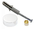Крепление зеркала к стене через отверстие. Комплектация: декоративный элемент, латунная втулка с резьбой, пластиковые втулки под отверстия в зеркале 6 и 8мм, шуруп и дюбель.