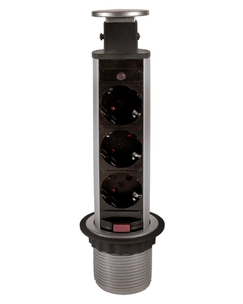 Блок розеток выдвижной вертикальный POP UP Compact, 3 розетки, 250В, D=60мм Серебро