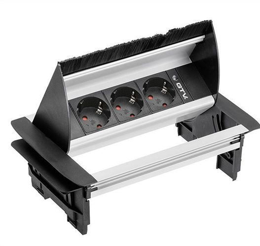 Блок розеток настольный 3 розетки без нижнего корпуса, с щёткой, алюминий, с проводом 1,5 метра